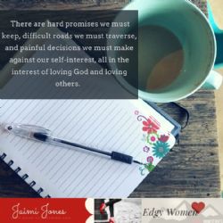 There are hard promises we must keep, difficult roads we must traverse, and painful decisions we must make against our self-interest, all in the interest of loving God and loving others.
